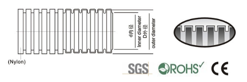 產(chǎn)品材質(zhì):PA6尼龍浪管(polyamide)
