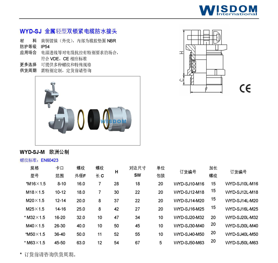 WYD輕型金屬雙鎖緊電纜接頭.pdf產(chǎn)品圖紙下載: