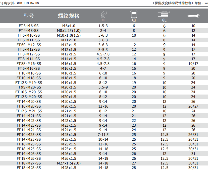 FT型304不銹鋼電纜接頭,所有規(guī)格都有現(xiàn)貨,產(chǎn)品符合IP68認(rèn)證、CE認(rèn)證、ROSH認(rèn)證!材質(zhì)可選用SUS304、316以及316L等制作,全國(guó)免費(fèi)電話:400-088-6591