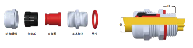 產(chǎn)品材質(zhì):外部金屬為黃銅鍍鎳(304,316,316L),夾緊爪為尼龍PA66,密封件為EPDM或NBR橡膠