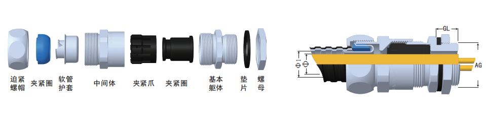 ☆ 產(chǎn)品特性:此款產(chǎn)品既可防電線松動,又可連接金屬軟管,裝卸只需拔插無需工具,大大縮減了安裝時間,夾緊電纜范圍大抗拉力特強(qiáng),產(chǎn)品有耐酸堿、耐化學(xué)物質(zhì)與一般溶劑等抗腐蝕特性,可防水、防塵