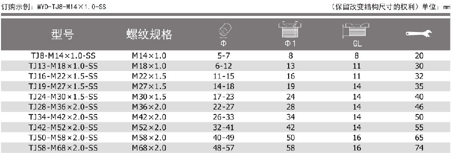 ☆ 定制說明:本款TJ-SS夾緊式船用填料函產(chǎn)品,可根據(jù)客戶要求,定制不同的螺紋規(guī)格