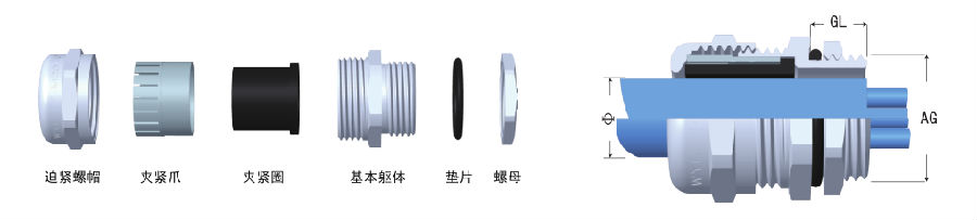 ☆ 防護(hù)等級(jí): 在規(guī)定卡口范圍內(nèi),使用O形密封圈旋緊迫緊頭,達(dá)到IP68-10Bar