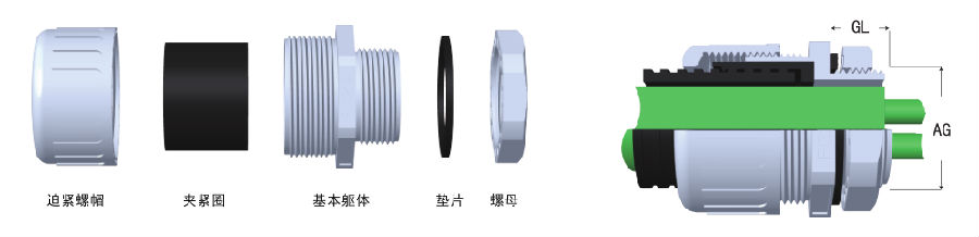 ☆ 產(chǎn)品特性 : 利用旋緊迫緊螺帽讓D部分夾緊圈(也可以更換為加緊爪)收縮,來固定波紋管,被廣泛運用于電氣連接設(shè)備上