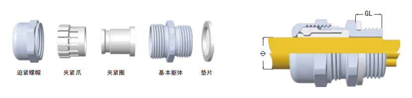 產(chǎn)品材質(zhì):金屬部分為304不銹鋼(316不銹鋼,黃銅鍍鎳)材制作而成,夾緊爪為PA66尼龍材質(zhì),密封件為氟橡膠