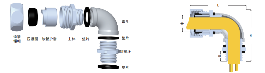 DPJ-E彎角軟管接頭,材質(zhì)可選用SUS304、316以及316L等制作,全國免費電話:400-088-6591